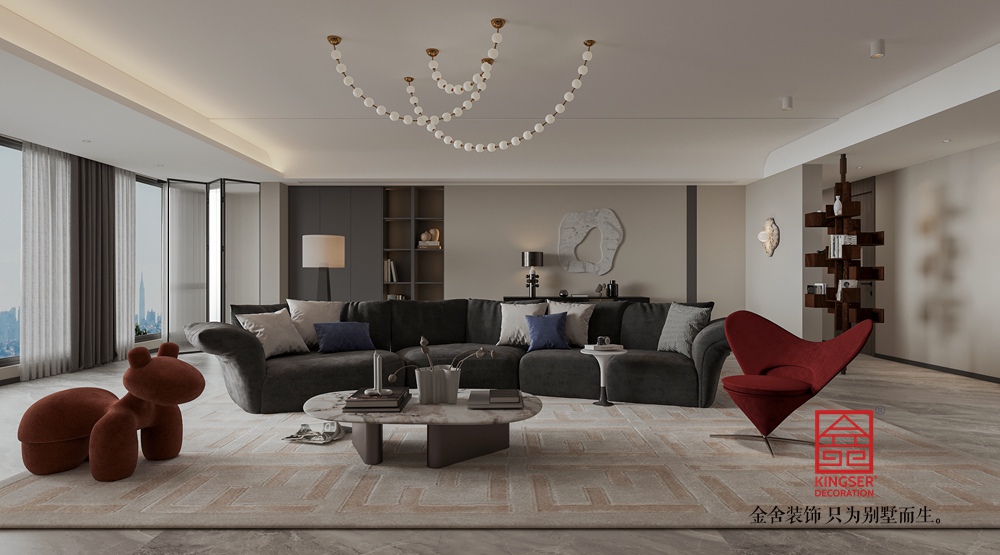 此案例为石家庄金舍装饰-高新苑269平米现代简约装修效果图。理想中的家不应只是空间的堆砌而是一个功能规划合理布局巧妙,空间井然有序的生活场所,在既定空间里不单有生活的舒适亦有精神的满足。