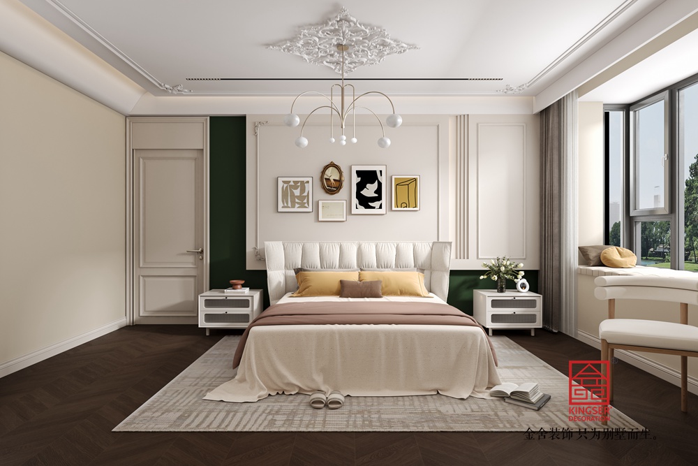 该客厅以中古风为设计脉络,巧妙融合复古与现代元素。整体色调温暖柔和,木质地板与浅米色墙面相衬,营造出静谧舒适的基底氛围。 墨绿色丝绒沙发,凭借其复古的纹理与饱满的造型,成为空间视觉重心,搭配色彩协调的抱枕,尽显复古优雅。两侧造型圆润、质感柔软的白色单人椅,为空间注入灵动与温馨感,与沙发形成有趣的风格对话。
