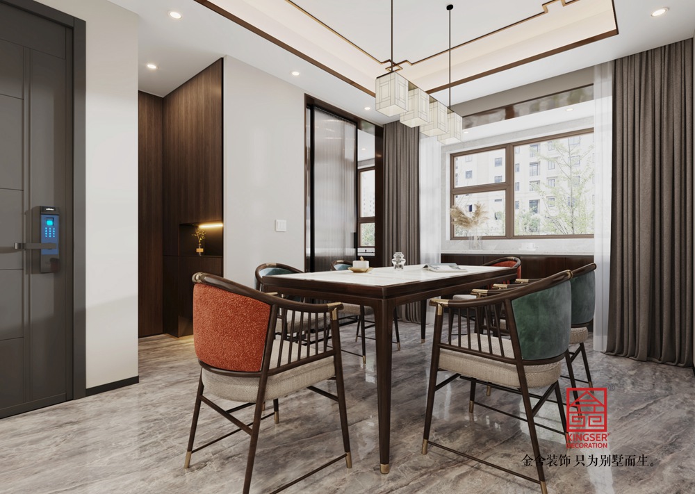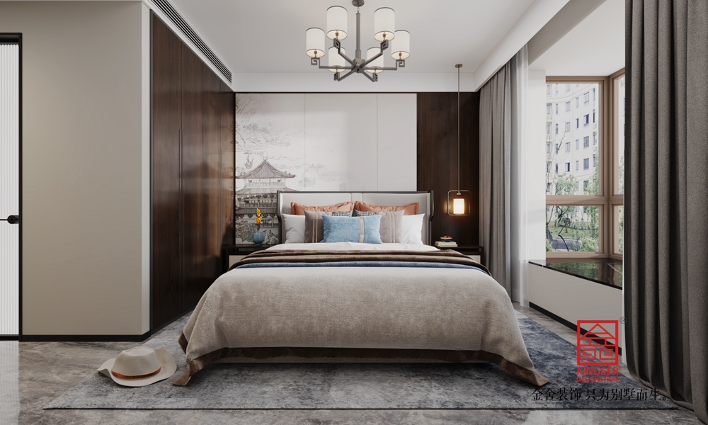 大面采光结合轻纱窗帘,让自然光轻柔洒落,与室内的绿植、挂画等相互映衬,营造出 “天人合一” 的意境,打造出一个既有传统文化底蕴,又符合现代生活需求的舒适居所。